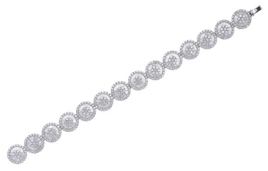 Comprising fourteen clusters, set with baguette and round brilliant cut diamonds totalling 9.82cts, total length 180mm, in 18ct white gold.