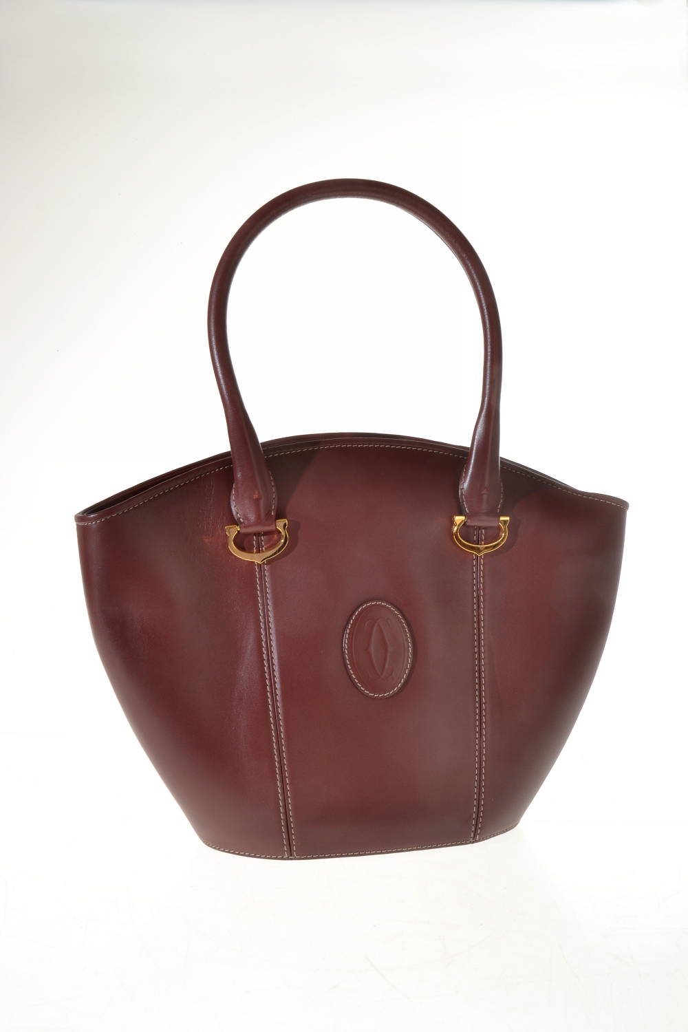 Styled in burgundy leather with burgundy leather trim and gold metal hardware, authenticity card included, 21 x 25 x 10.5cm.