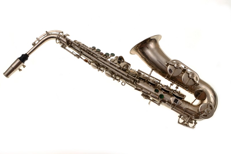 SAXOPHONE B - 1980'S RUSSIAN SILVERPLATE SAXOPHONE 'N46' BY 'RAZNO' COMES WITH CASE. SAXOPHONE B - 1980'S RUSSIAN SILVERPLATE SAXOPHONE 'N46' BY 'RAZNO' COMES WITH CASE.