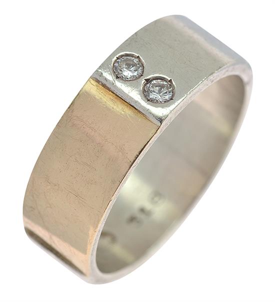 The flat band set with two round brilliant cut diamonds of 0.03cts each, styled in sterling silver, reference 318.