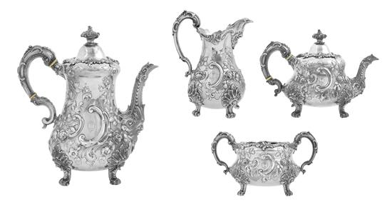 A VICTORIAN FOUR PIECE STERLING SILVER TEA AND COFFEE SERVICE EDWARD BARNARD & JOHN BARNARD, LONDON, 1853-1854