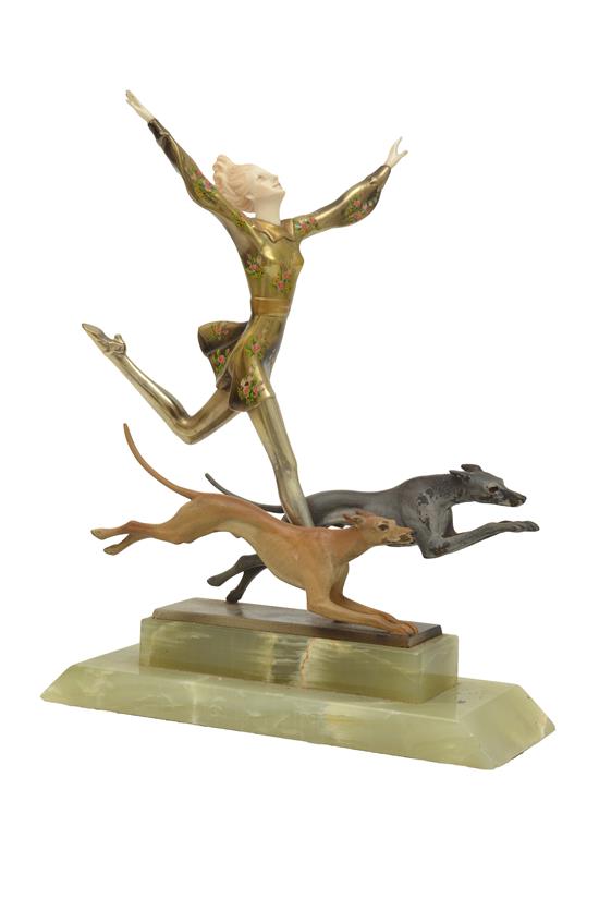 AN ART DECO COLD PAINTED FIGURE WITH DOGS