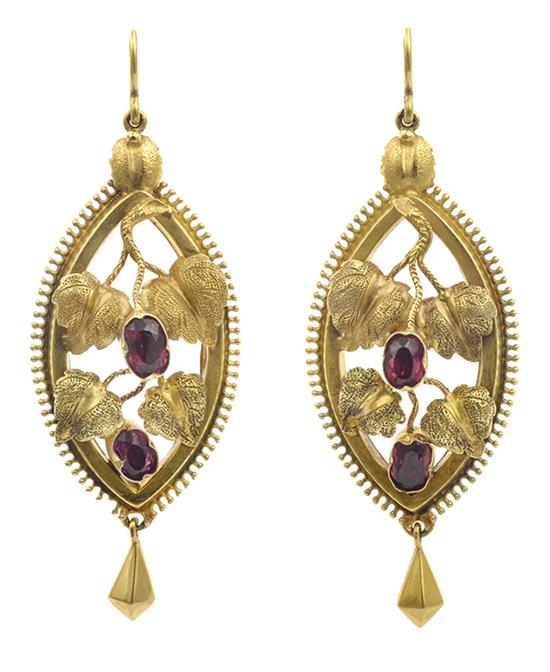 A PAIR OF ANTIQUE AUSTRALIAN GOLD AND GARNET DROP EARRINGS