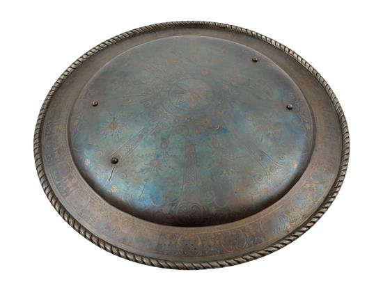 A 19TH CENTURY CONTINENTAL SILVER INLAID SHIELD, C.1850