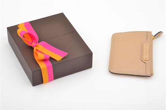 Styled in cream Vernis leather, with gold metal hardware, SN 3194, 13 x 9cm, with box.