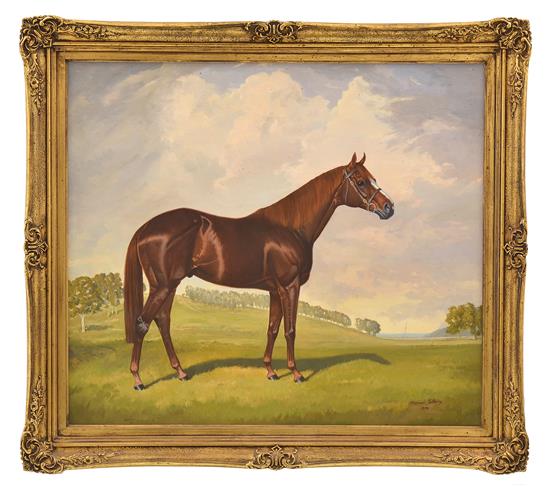 plaque reads Major Portion GB, by Court Martial from Better Half, Chestnut Horse 1955, in elaborate gilded frame, 90 x 100cm