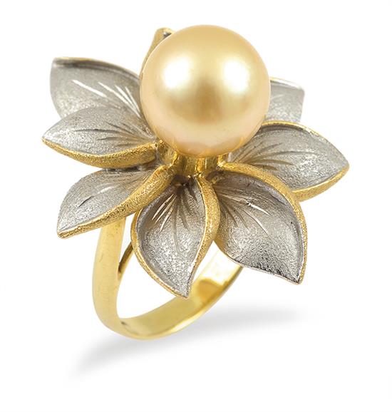 A GOLDEN SOUTH SEA PEARL RING BY LARRY