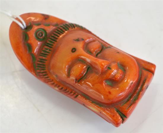 A CORAL PENDANT OF GUANYIN