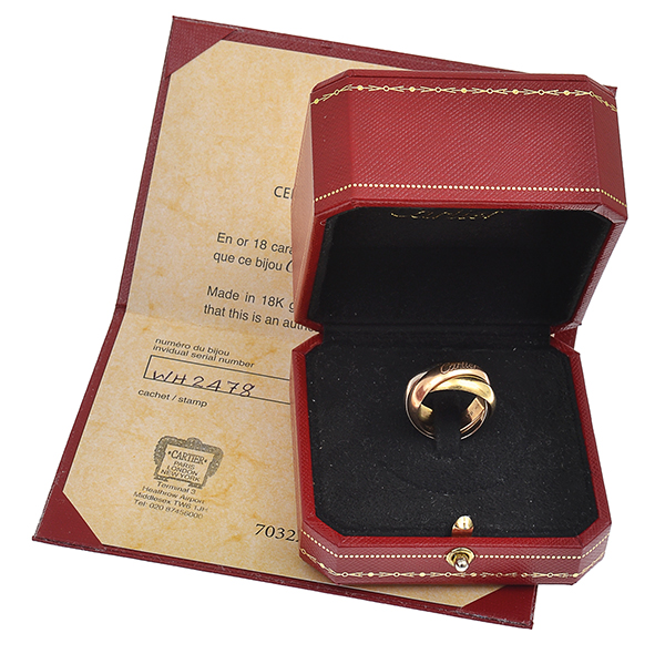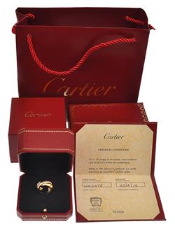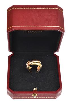 The limited edition Trinity ring with one band inscribed "Or Amour Et Trinity" modelled in 18ct gold, signed, ring size G-H, boxed and with papers.