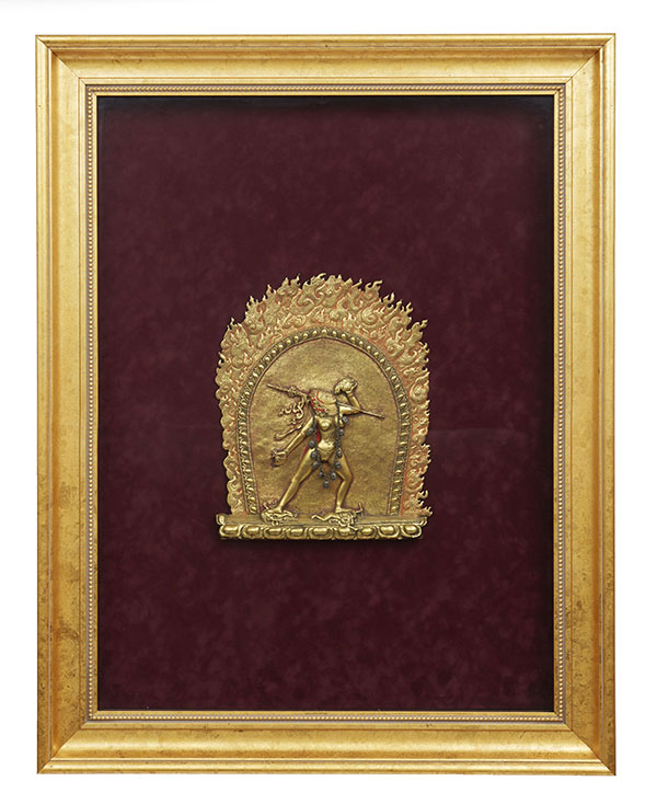 A 20TH CENTURY NEPALESE NARO DAKINI FRAMED AND MOUNTED RELIEF