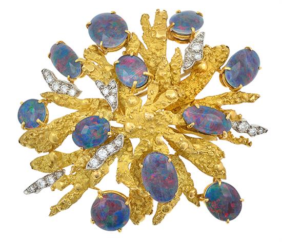 AN OPAL AND DIAMOND BROOCH BY GRIMA
