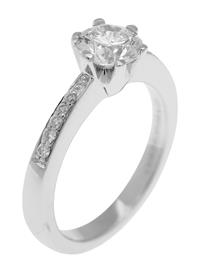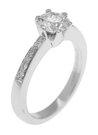 The round brilliant cut diamond of 1.02cts, having diamond detail to the shoulders, mounted in 18ct white gold, ring size M.