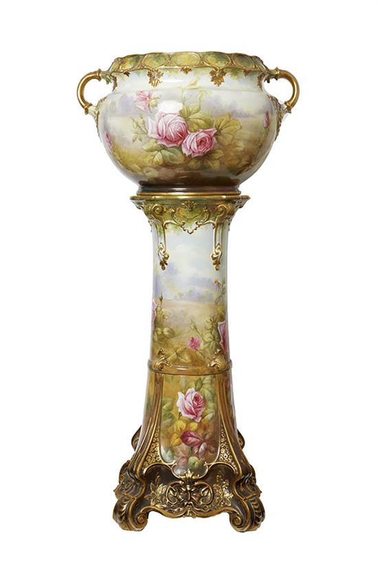 A ROYAL BONN JARDINIERE AND STAND, FRANZ MAHLEM GERMANY CIRCA 1900