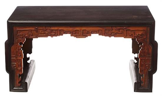 A HARDWOOD ELONGATED STAND, IN THE MING STYLE