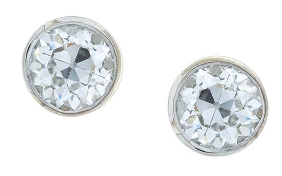 Each set with an old style vintage cut diamond of 0.68cts, collet set in 18ct white gold.