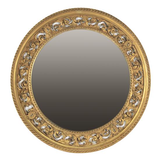 A FRENCH EMPIRE STYLE GILTWOOD FRAMED CONVEX MIRROR