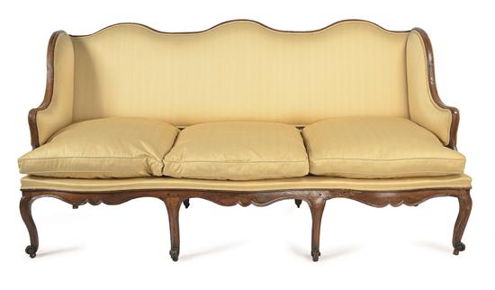 A LOUIS XV STYLE FRUITWOOD FRAMED CANAPE