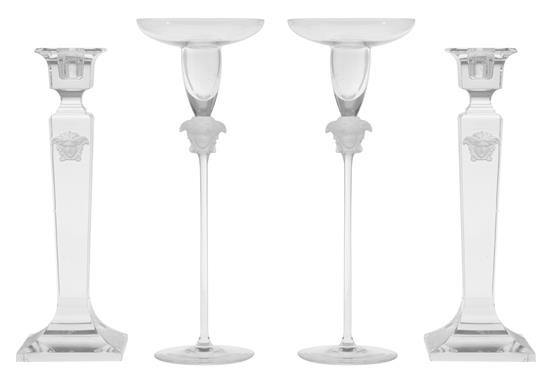 TWO PAIRS OF VERSACE FOR ROSENTHAL CRYSTAL CANDLE HOLDERS
