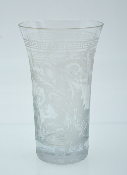 The etched crystal vase by Rosenthal, with arabesque design.