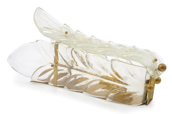 A PAIR OF LEAF MOULDED GLASS WALL LIGHTS