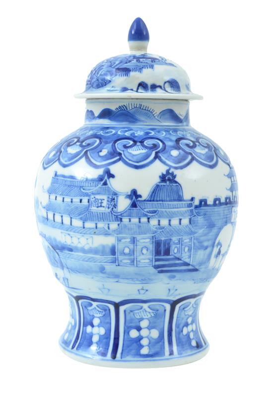 A BLUE AND WHITE PORCELAIN GINGER JAR AND COVER