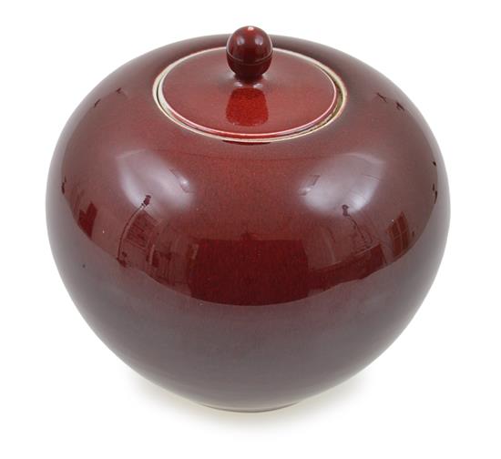 A CHINESE EARTHENWARE GLAZED SANG DE BOEUF GINGER JAR AND COVER