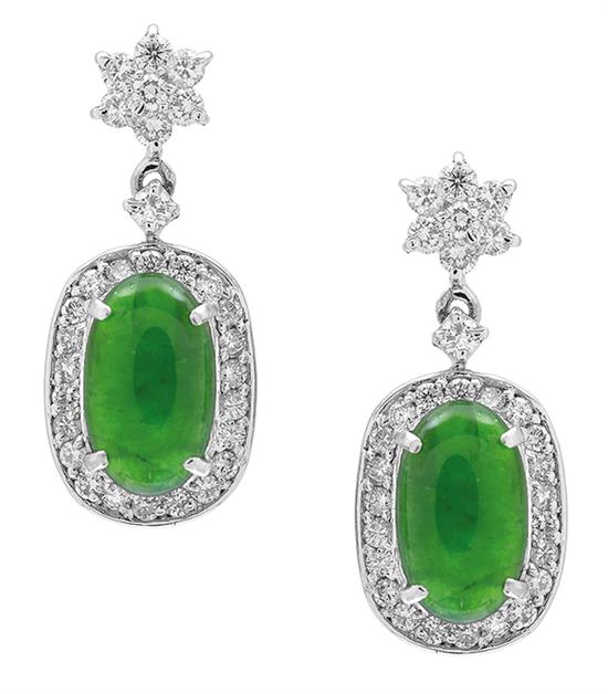 A PAIR OF JADEITE AND DIAMOND EARRINGS