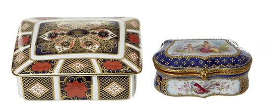 A JEWELLED PARIS PORCELAIN 'SEVRES' BOX, WITH A ROYAL CROWN DERBY PORCELAIN TRINKET BOX