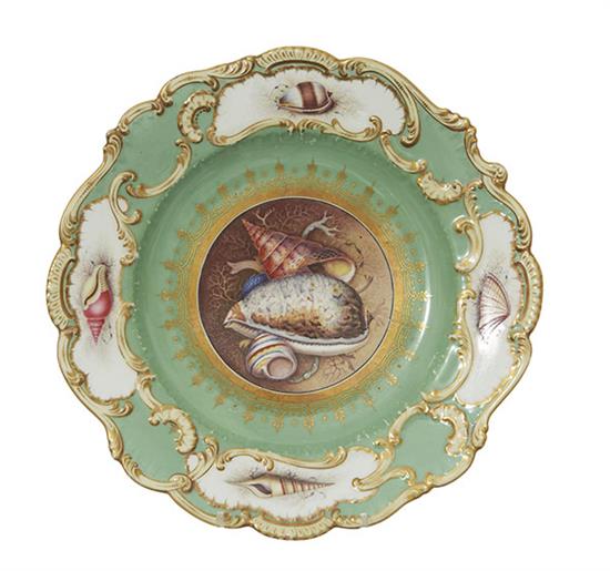 A FINE COALPORT SPECIMEN SHELL PAINTED PORCELAIN PLATE, ATTRIBUTED TO THOMAS BAXTER, CIRCA 1820