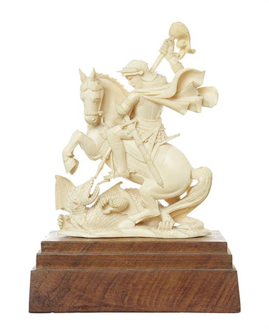 A 19TH CENTURY GERMAN IVORY CARVING OF ST GEORGE AND THE DRAGON