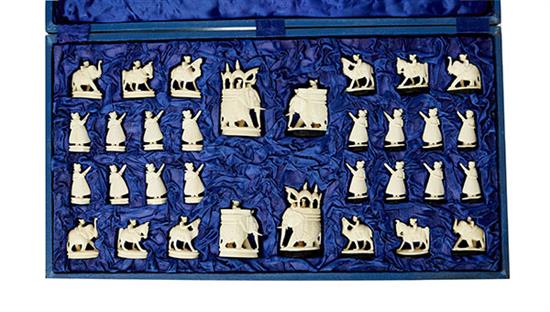 A PERSIAN CARVED IVORY CHESS SET, EARLY 20TH CENTURY