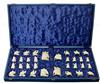 Carved as soldiers and generals on elephants, set upon integral timber stands, boxed.