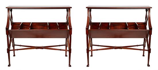 A PAIR OF 20TH CENTURY CHIPPENDALE STYLE MAHOGANY BOOK TROUGH TABLES