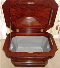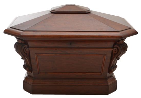 A WILLIAM IV FLAME MAHOGANY SARCOPHAGUS CELLARETTE