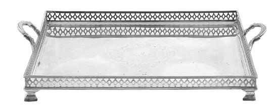 A LARGE VICTORIAN SILVER GALLERY EDGED SERVING TRAY
