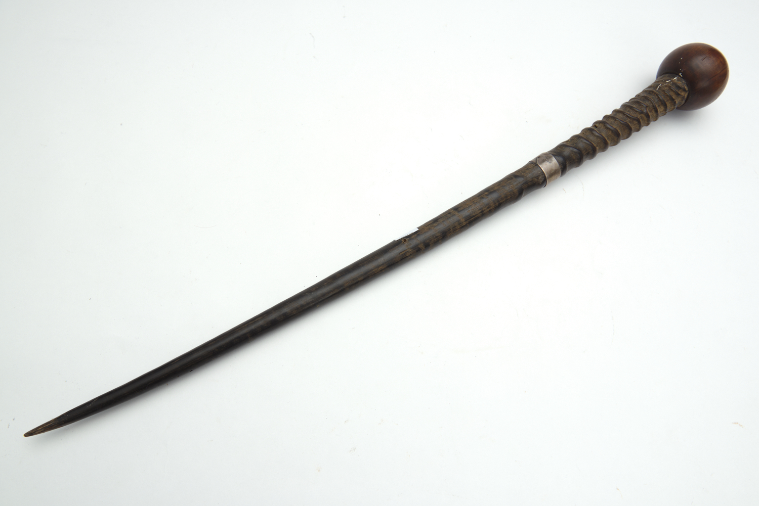 A SILVER MOUNTED HORN AND WOOD SOUTH AFRICAN ZULU KNOBKERRIE EARLY 20TH CENTURY