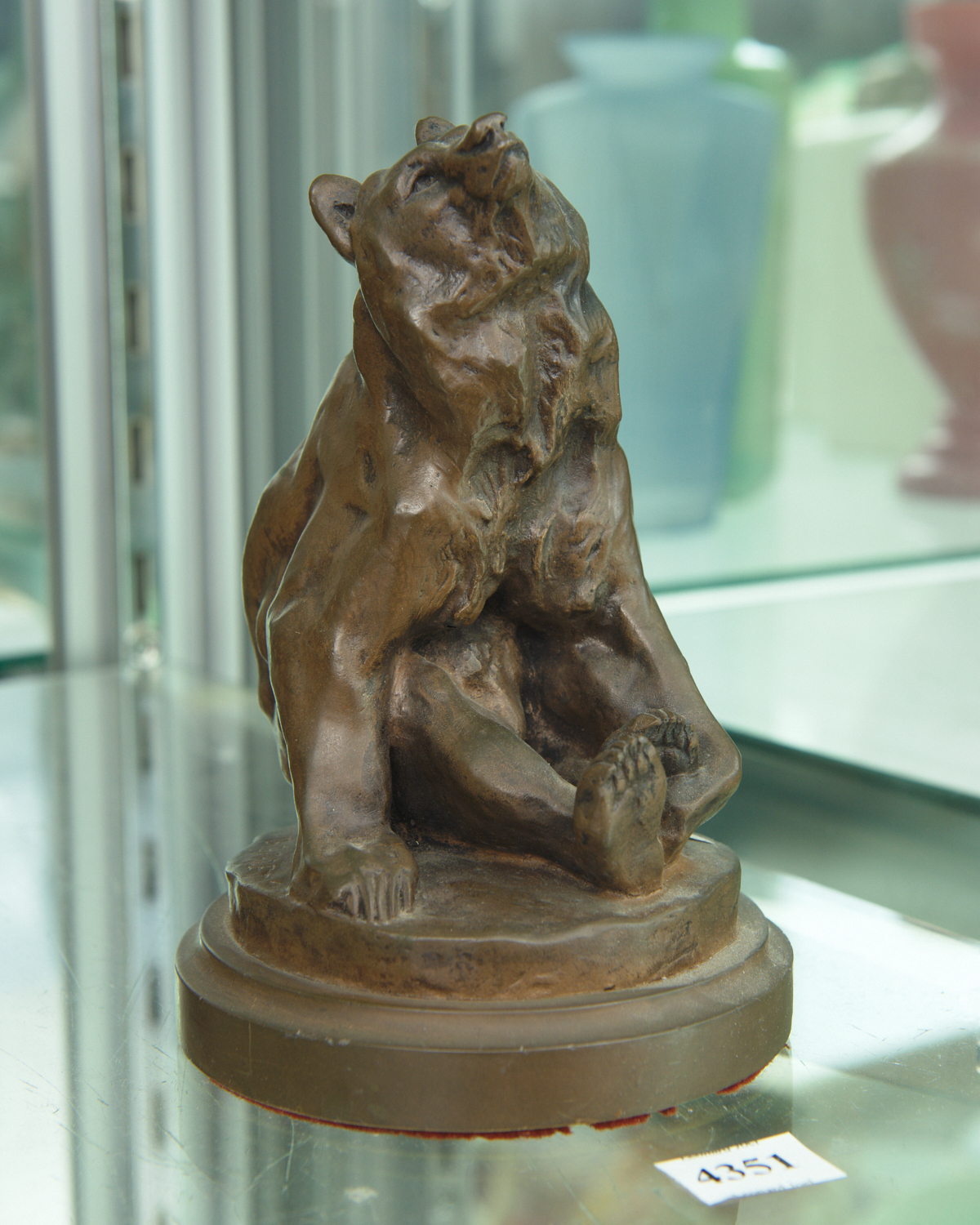 A PATINATED PLASTER BEAR FIGURINE