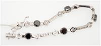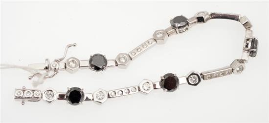 Comprising five round brilliant cut black diamonds interspaced by white diamond set panels, total black diamond weight 7.20cts, mounted in 18ct white gold, total length 180mm.