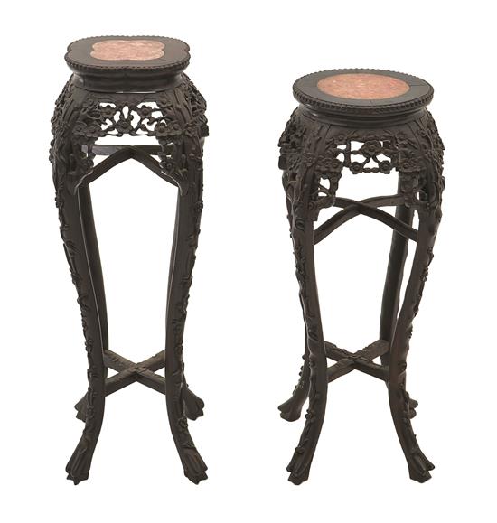 TWO SIMILAR CHINESE WOOD CARVED STANDS