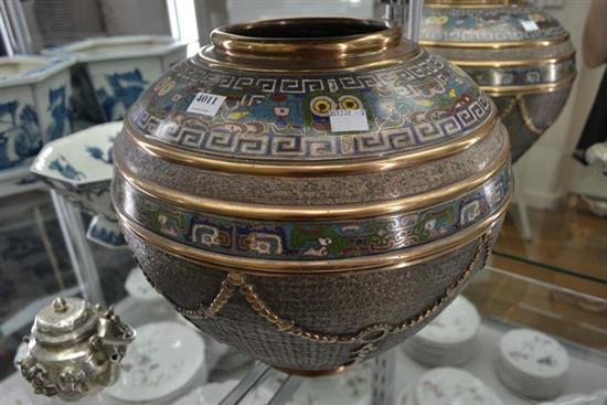 of compressed form, with a repeating archaic style motif and Grecian key border, 30cm high