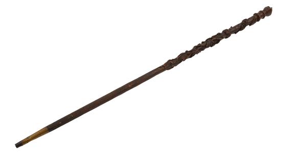 A ELM WALKING STICK, REPUTEDLY CARVED FROM PART OF THE BATTLESHIP HMS NELSON