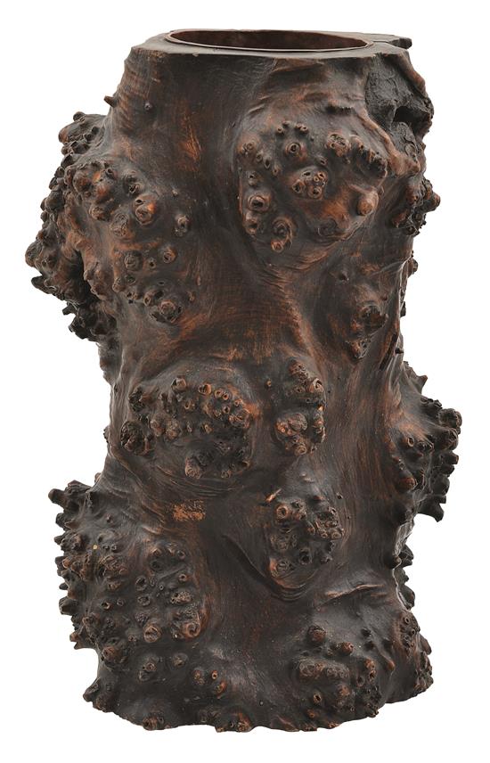 A LARGE JAPANESE BURL WOOD IKEBANA VESSEL
