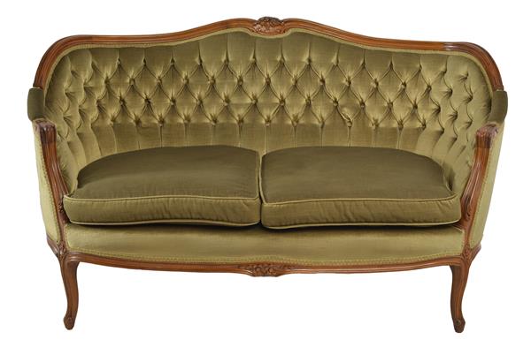 A LOUIS XV STYLE WALNUT FRAMED TWO SEAT SETTEE