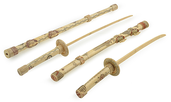 A PAIR OF CHINESE BONE SWORDS IN MATCHING SCABBARDS