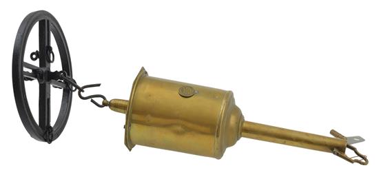 A BRASS AND CAST IRON CLOCKWORK BOTTLE JACK ROASTING SPIT