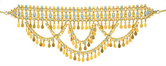 A GOLD AND ENAMEL FRINGED NECKLACE
