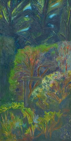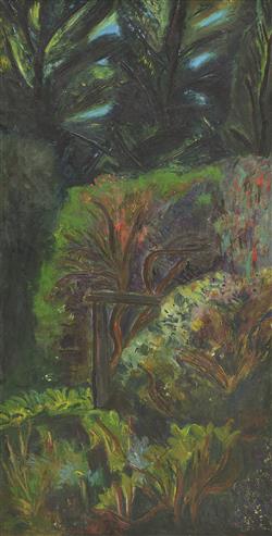 Elizabeth's Garden No. 1 1988, oil on canvas, 186 x 93cm, Private collection, Brisbane, illus. in Jeffrey Makin, Australia Felix - Landscapes by Jeffrey Makin, Macmillan, Melbourne, 2002, p. 93