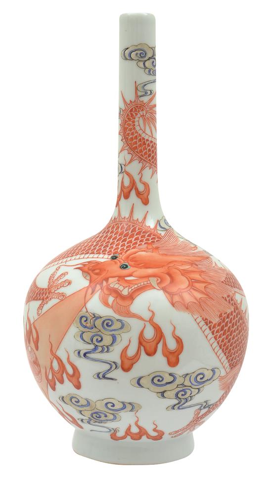 A CHINESE IRON RED DRAGON BOTTLE VASE
