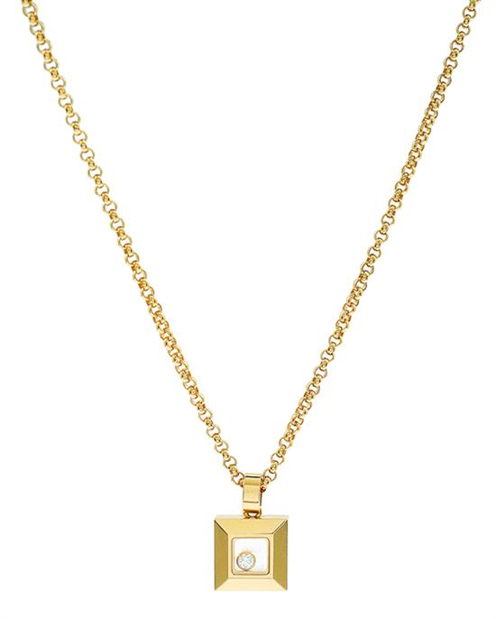 The signature floating diamond mounted in a square frame, suspended from a curb link chain, set in 18ct gold, total length 450mm.