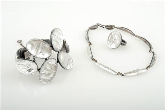 The bracelet, necklace and ring designed by Jacques Gautier in foil backed clear glass.